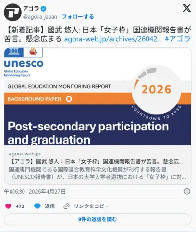 国連「日本の女性枠って男性差別じゃん。むしろ所得格差や地方の教育格差を何とかしろよw」