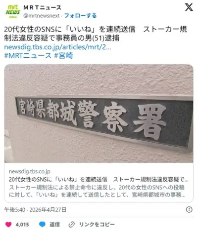 女性のSNSに「いいね」をしまくったおっさん、逮捕