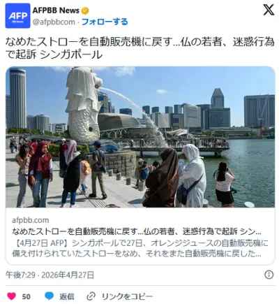 なめたストローを自動販売機に戻す…仏の若者、迷惑行為で起訴 シンガポール