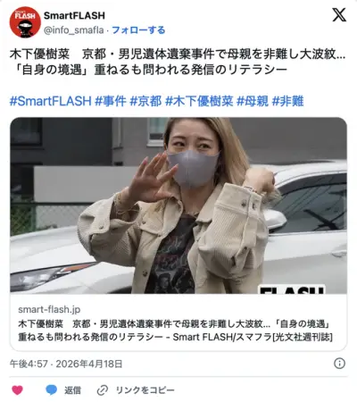 【京都男児遺体遺棄事件】木下優樹菜、犯人の義父を選んだ諸悪の根源と母親非難し批判殺到へ