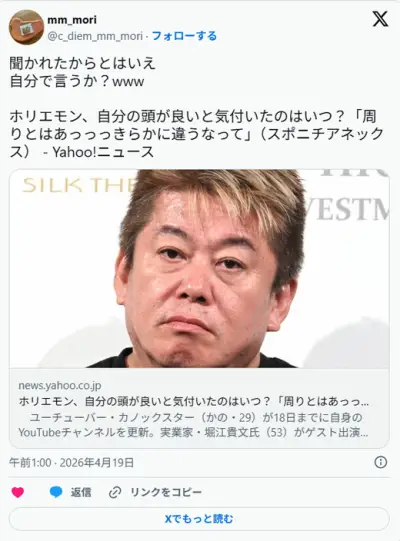 堀江貴文、自分の頭が良いと気付いたのいつ? 「周りとはあきらかに違うなって」「クラスに何人かいるんだよ悪口しか言えないヤツが」