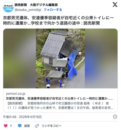 【京都南丹男児遺体】安達優季容疑者が自宅近く、るり渓の公衆トイレに一時的に遺棄か…学校まで向かう道路の途中