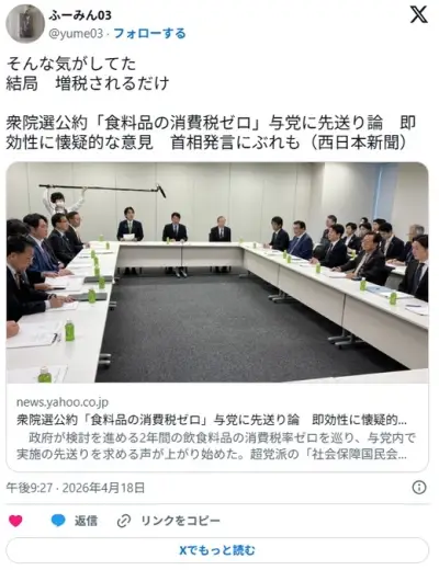 高市早苗さん、食料品の消費税0をドタキャンへwwwwwwwww