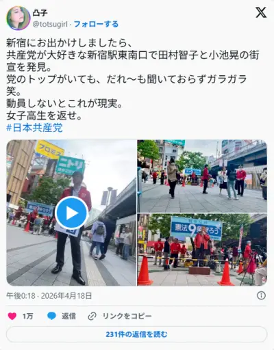 共産党・田村氏と小池氏が新宿駅東南口で憲法9条守れ署名運動。誰も聞いておらずガラガラで笑われる