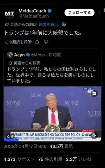 【画像】トランプさん「我が国は1年前まで笑いものだった。だが今は誰も馬鹿にしない!」