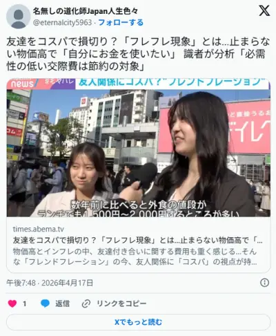 友達をコスパで損切り?「フレフレ現象」とは…「自分にお金を使いたい」識者が分析「必需性の低い交際費は節約の対象」