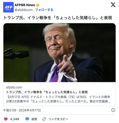トランプ「イラン戦争はちょっとした気晴らしだった😤」