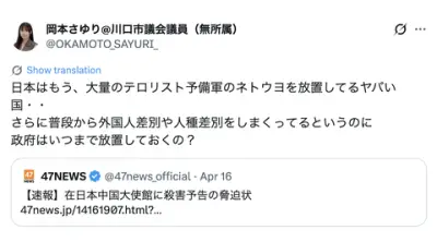 【正論】川口市議「日本は『ネトウヨ』というテロリストを放置してるヤバい国」
