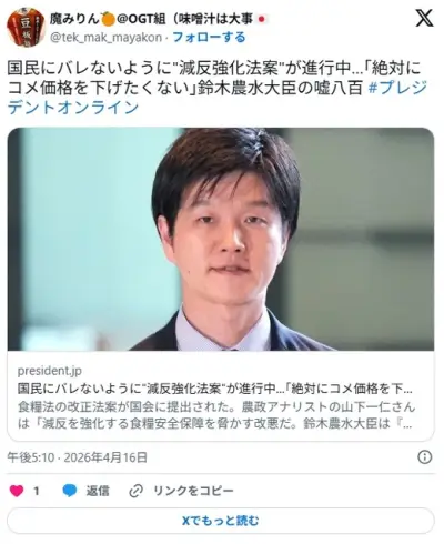 国民にバレないように"減反強化法案"が進行中…「絶対にコメ価格を下げたくない」鈴木農水大臣の嘘八百