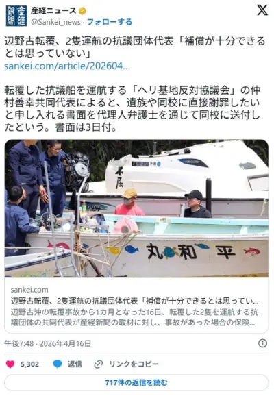 【辺野古転覆】沖タイ社説より遺族noteのほうが内容が濃く理路整然としている…ネット「上からの命令で辺野古沖転覆事故を記事にもできないサラリーマン記者はジャーナリズムがない」