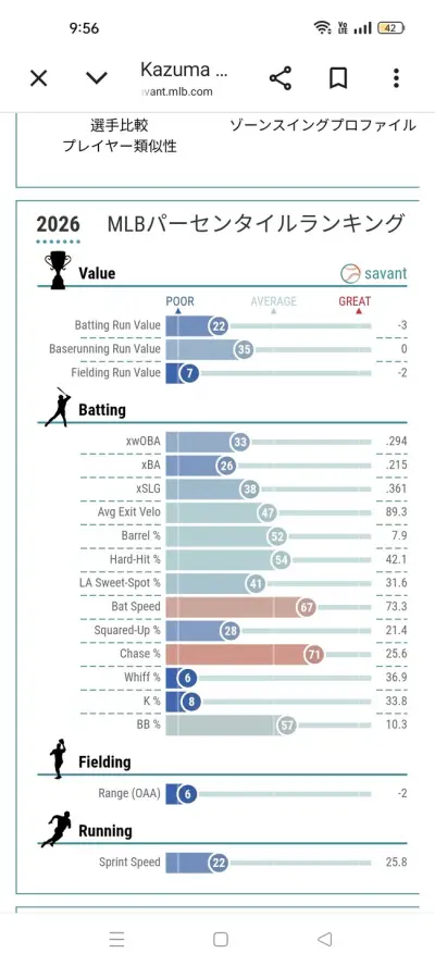 【悲報】岡本和真さん、守備指標ですらもMLB下位6%であることが判明wwww