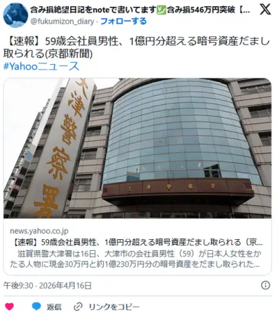 59歳会社員男性、1億円分超える暗号資産だまし取られる