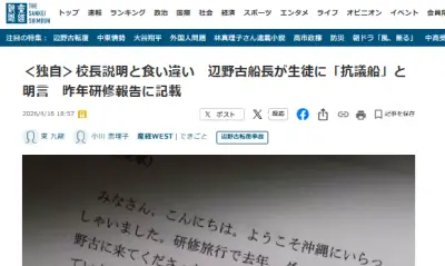 【違法船転覆】校長、保護者に虚偽説明か 日本基督教団牧師の金井船長、生徒に「抗議船」と明言していた