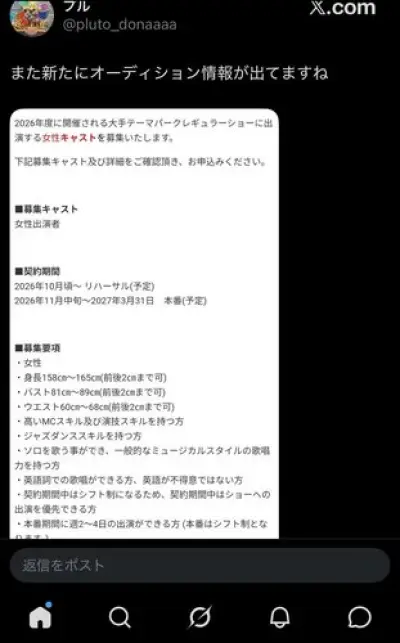 【画像】テーマパークさん、女性キャストの求人にバストやウエストまで指定してしまう