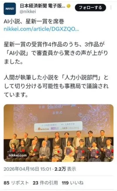 AI作品OKな『星新一賞』、受賞作の3/4がAI作品に 選考委員「AIの執筆した文章はもう読みたくない」
