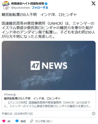 難民船転覆250人不明 インド洋、ロヒンギャ