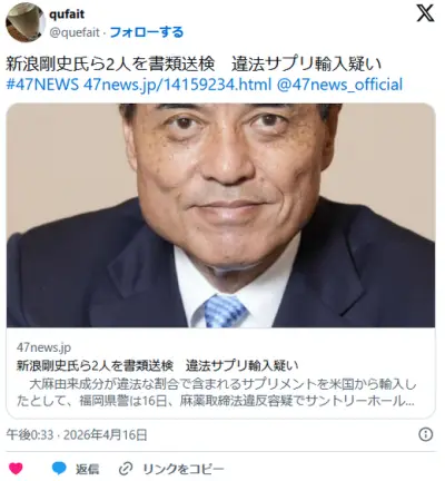 【サントリーHD元会長】新浪剛史氏、書類送検へ 違法サプリ輸入疑い 麻薬取締法違反容疑