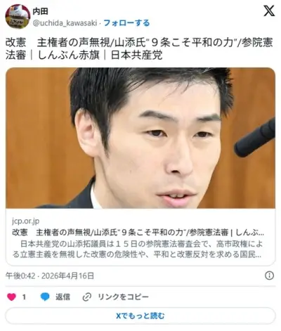 共産党「改憲反対を求める国民の声が大きくなっている」