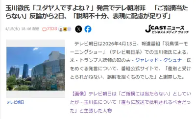 【玉川徹の番組発言】テレビ朝日が反論から一転して謝罪「不快な思いをされた皆様にお詫びいたします」も、コメンテーターの発言とする