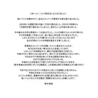 【悲報】UNISON SQUARE GARDENさん、ドラム脱退で「現体制終了」してしまう