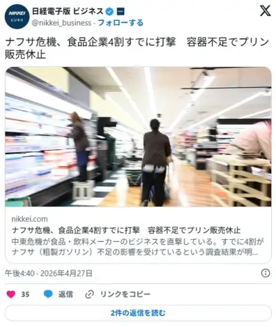 ナフサ危機、食品企業4割すでに打撃 容器不足でプリン販売休止
