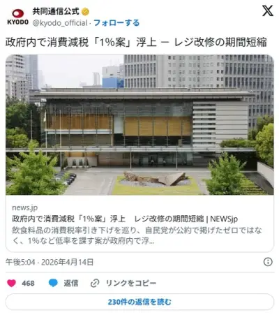 政府内で消費減税「1%案」浮上 レジ改修の期間短縮 そもそもレジは税率ゼロを想定せず