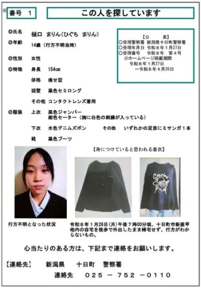 信濃川で発見された身元不明遺体、十日町市で行方不明だった女子中学生と判明