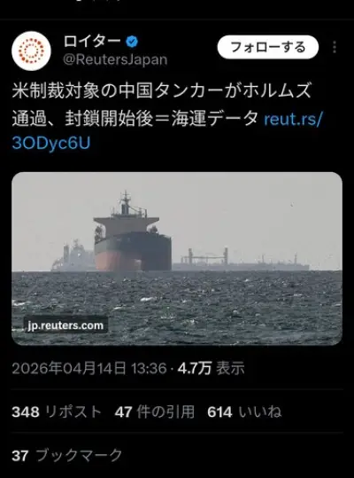 【画像】アメリカさん、ホルムズ海峡を封鎖するも中国船に堂々通過されてしまう
