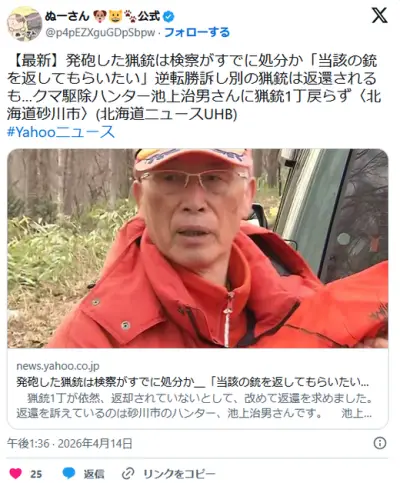 【北海道】発砲した猟銃は検察がすでに処分か「当該の銃を返してもらいたい」逆転勝訴し別の猟銃は返還されるも…猟銃1丁戻らず