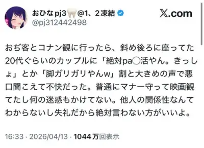 【画像】女さん「おぢ客とコナン観に行ったらカップルにパパ活やんって言われた、他人の関係なんて分からないのに失礼」