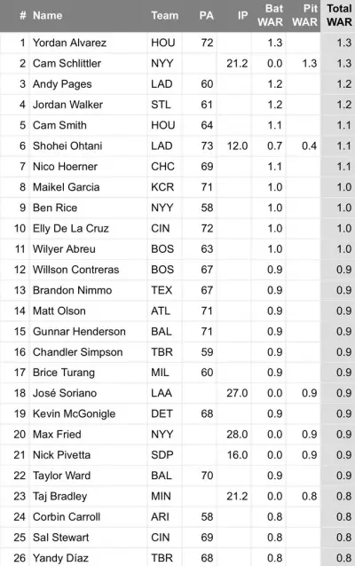 大谷翔平 OPS.996 12回 防御率0.00←これでWAR1位にならないって欠陥だよな