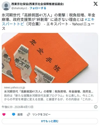 氷河期世代「高齢貧困41万人」の衝撃:税負担増、年金崩壊、政府支援策が“絆創膏“ に過ぎない理由とは
