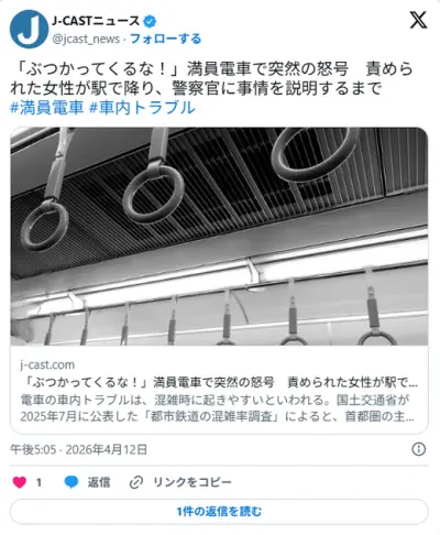 【ぶつかってくるな!】満員電車で男性が怒号、30代女性が痴女扱いされ困惑へ