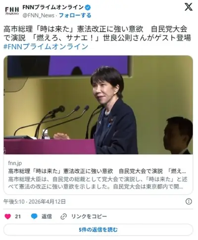 高市総理「時は来た」憲法改正に強い意欲