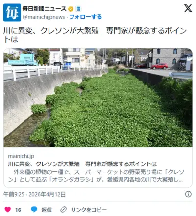 【🌿】川に異変、外来種のクレソンが大繁殖