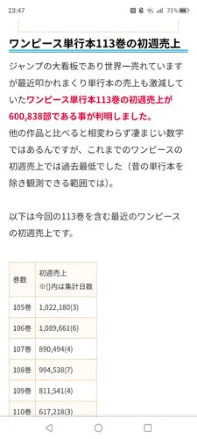 【画像】ワンピースさん、新刊コミックの売り上げが激減してしまう