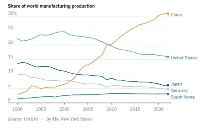 【悲報】ドイツの製造業ガチで逝く。2000年には世界の8%を占めていたのに2030年には3%