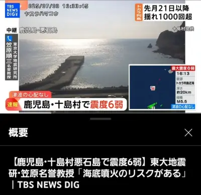 【画像】トカラ900回以上の地震、記録的猛暑、記録的大雨、島民不安。「7月5日に何かがあるのか?」