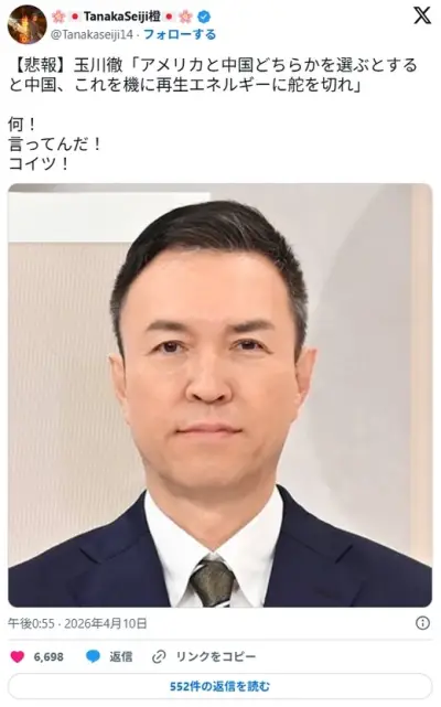 玉川徹氏「アメリカと中国どちらかを選ぶとすると中国、これを機に再生エネルギーに舵を切れ」