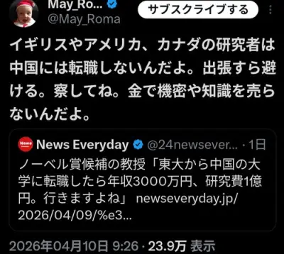 【画像】研究者さん「中国行けば年収3000万、研究費1億」→なぜか売国奴扱いされてしまう