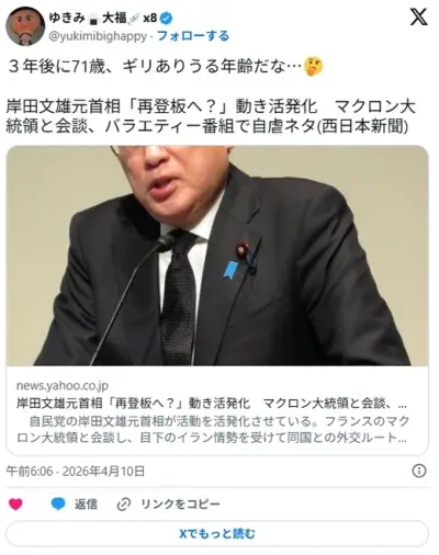 岸田文雄元首相「再登板へ?」動き活発化 「増税メガネ」の揶揄に喜ぶ
