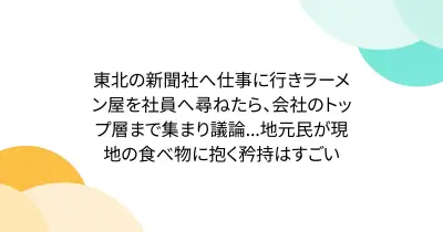 東北の新聞社へ仕事に行きラーメン屋を社員へ尋ねたら、会社のトップ層まで集まり議論...地元民が現地の食べ物に抱く矜持はすごい