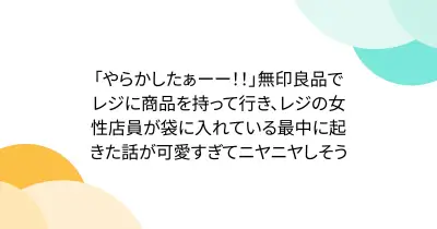 「やらかしたぁーー!!」無印良品でレジに商品を持って行き、レジの女性店員が袋に入れている最中に起きた話が可愛すぎてニヤニヤしそう