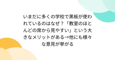 いまだに多くの学校で黒板が使われているのはなぜ?「教室のほとんどの席から見やすい」という大きなメリットがある→他にも様々な意見が挙がる
