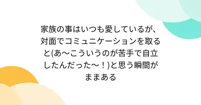 家族の事はいつも愛しているが、対面でコミュニケーションを取ると(あ~こういうのが苦手で自立したんだった~!)と思う瞬間がままある