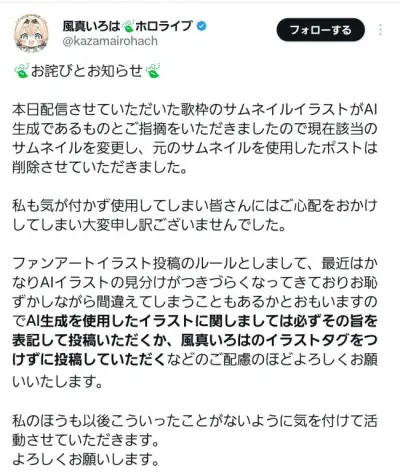 【悲報】ホロライブVTuber、生成AIを使用してしまい謝罪へ追い込まれる