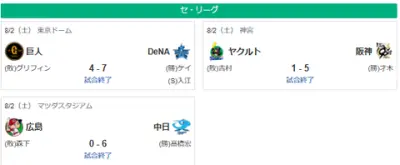 8/2セ順位 神=(10)=-横-巨==中=-広=====-ヤ