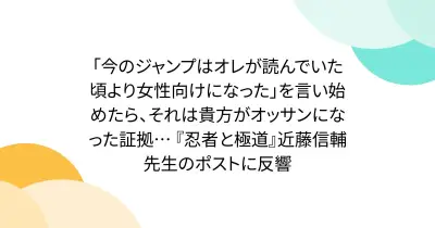 「今のジャンプはオレが読んでいた頃より女性向けになった」を言い始めたら、それは貴方がオッサンになった証拠… 『忍者と極道』近藤信輔先生のポストに反響