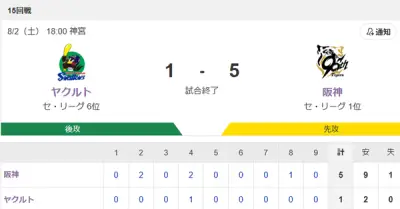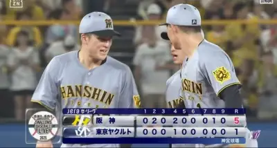 【ヤクルト対阪神15回戦】阪神快勝でM35!今季初4本塁打でヤクルトに連勝!佐藤輝はキング独走27号、才木9勝目!