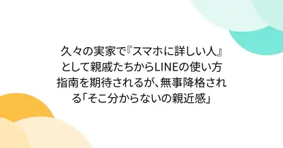 久々の実家で『スマホに詳しい人』として親戚たちからLINEの使い方指南を期待されるが、無事降格される「そこ分からないの親近感」
